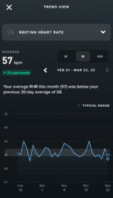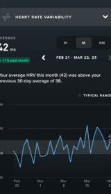 - Heart Rate Variability (HRV): This is the variance between each heartbeat, measured while one is asleep. Again, it is very individual, but based on the personal range, a higher value or more variability indicates a more rested state. In comparison, a lower value indicates a more stressed state. This is opposite to resting heart rate, where lower values suggest less stress.